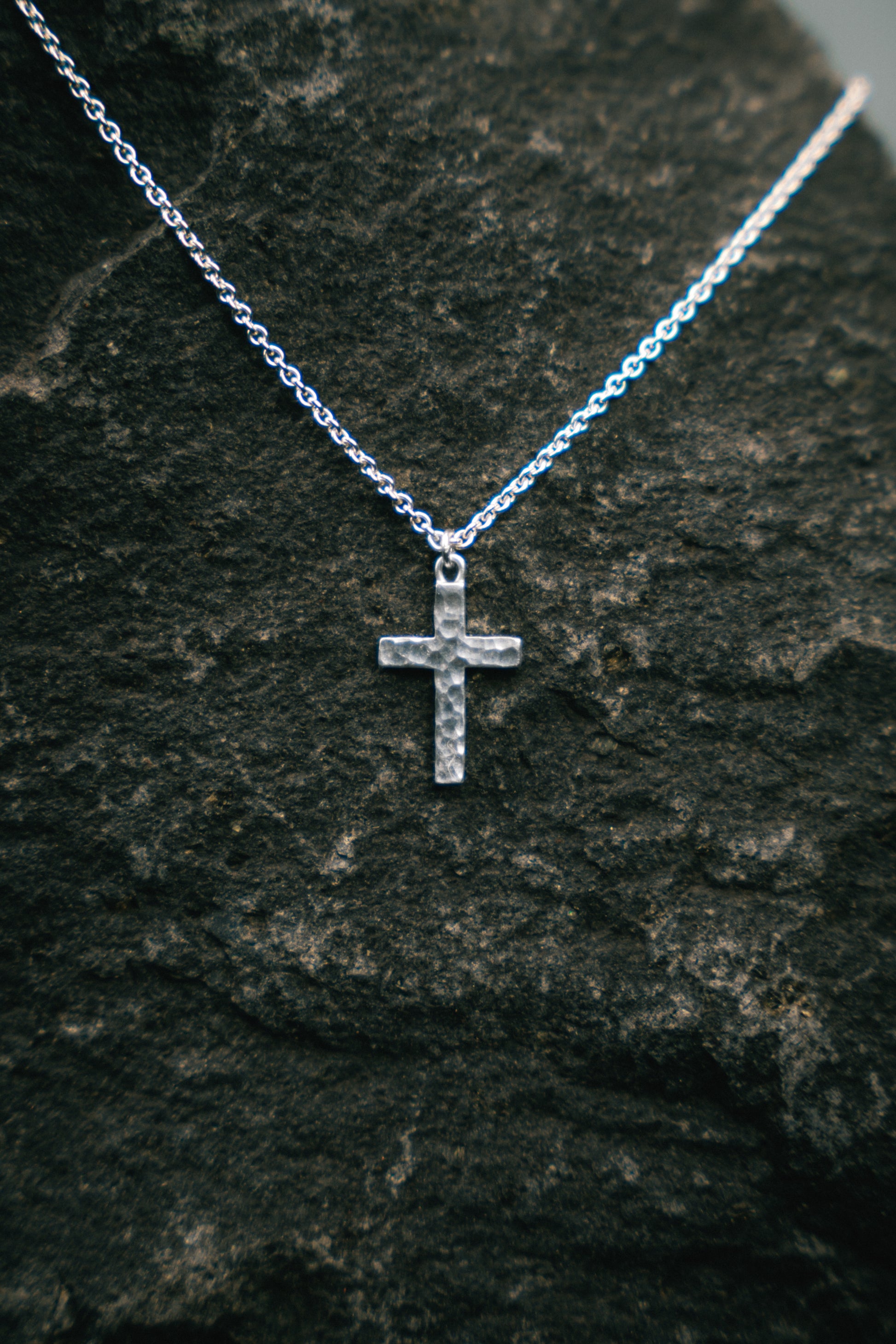 Handgefertigte Kreuzkette - gehämmert aus 925 Sterling Silber
