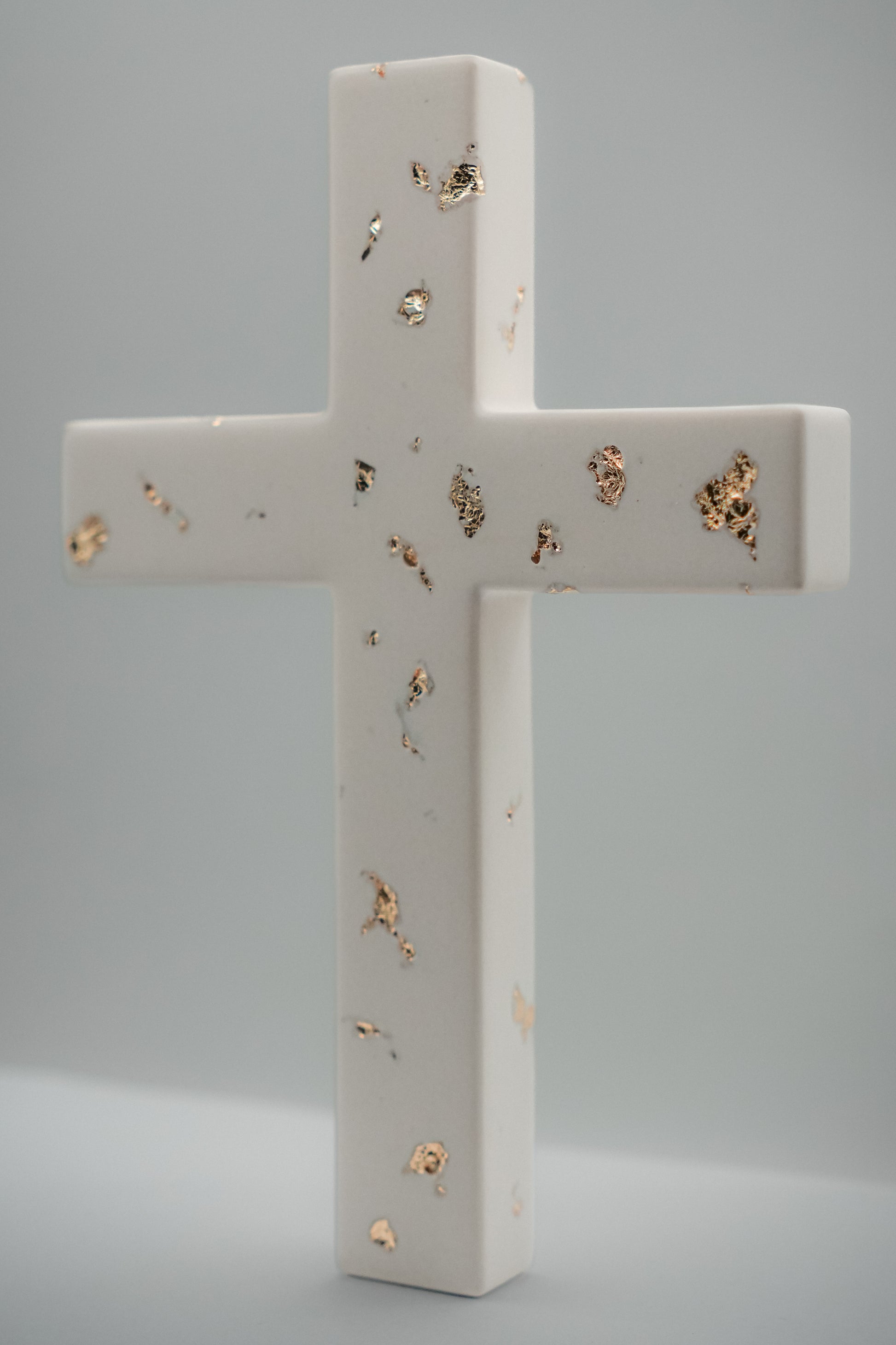 Dieses Wandkreuz habe ich in sorgfältiger Handarbeit aus hochwertigem Jesmonite gefertigt, ein moderner Mineralwerkstoff, der für seine Langlebigkeit, feine Oberfläche und feinen Farbton bekannt ist.